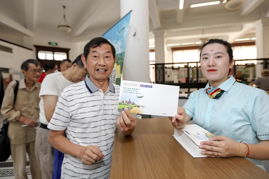 最受瞩目的环节,莫过于第56届世界邮政日纪念封的首发。纪念封刚一亮相,便吸引了大批市民驻足围观,大家自觉排成整齐的队伍,有序等待领取;拿到纪念封后,又纷纷走向纪念邮戳区,小心翼翼地为封片盖上专属印记,每一个动作都透着对集邮的珍视。